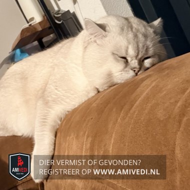 | Signalement | Geheel witte dikke vacht met een beige ondertoon, blauwe ogen. |