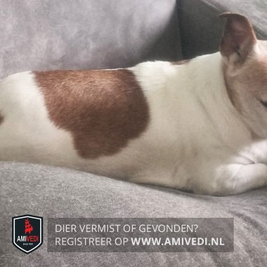 | Signalement | Wit met bruin gevlekt. Voornamelijk wit, oren en bovenop de kop lichtbruin tot de ogen, op de rug een grote bruine vlek dat doorloopt over de rechterflank, bovenaan de staart en aan de staart bruine vlekken. Doof en half blind. Jack Russell Terriër. |