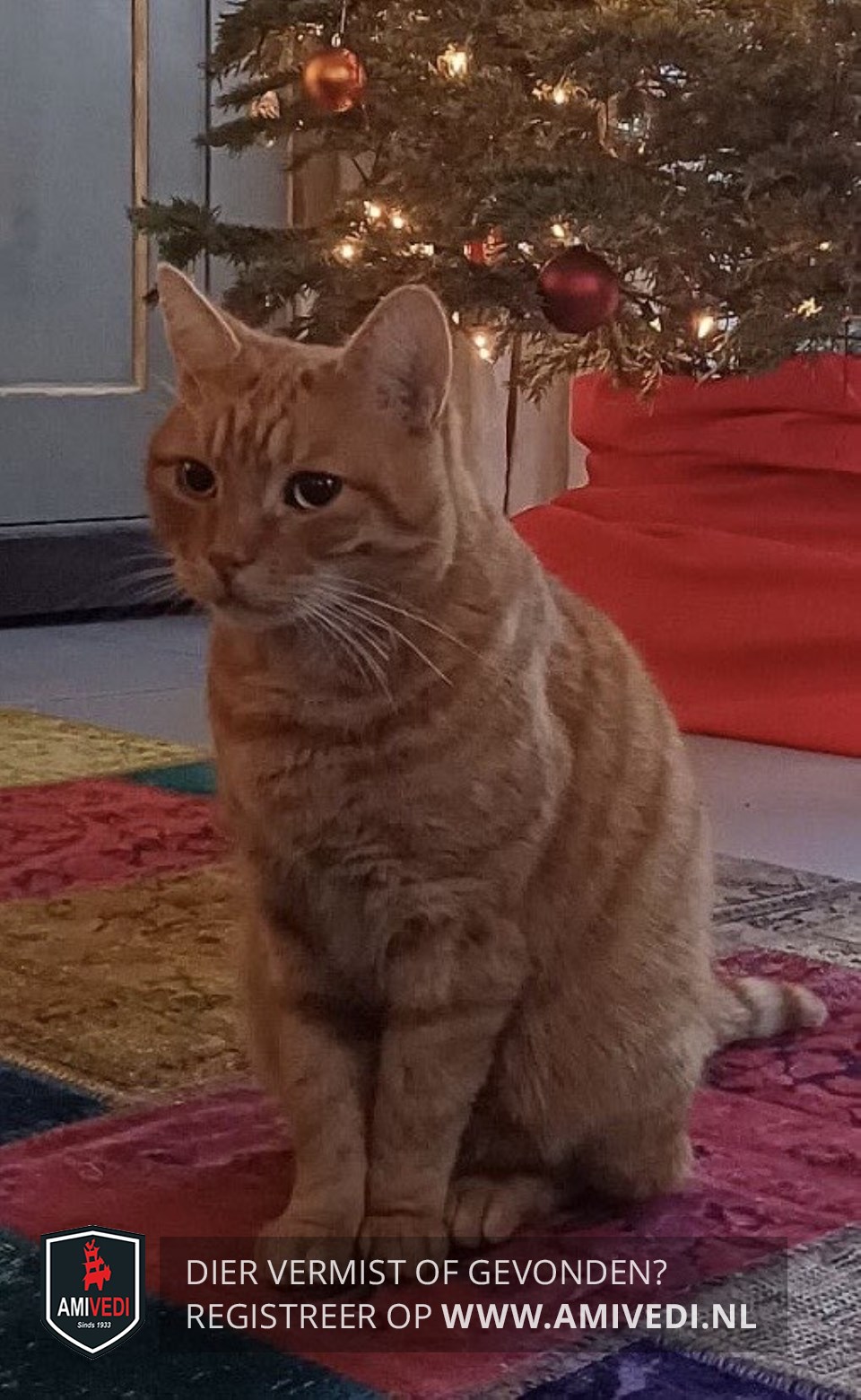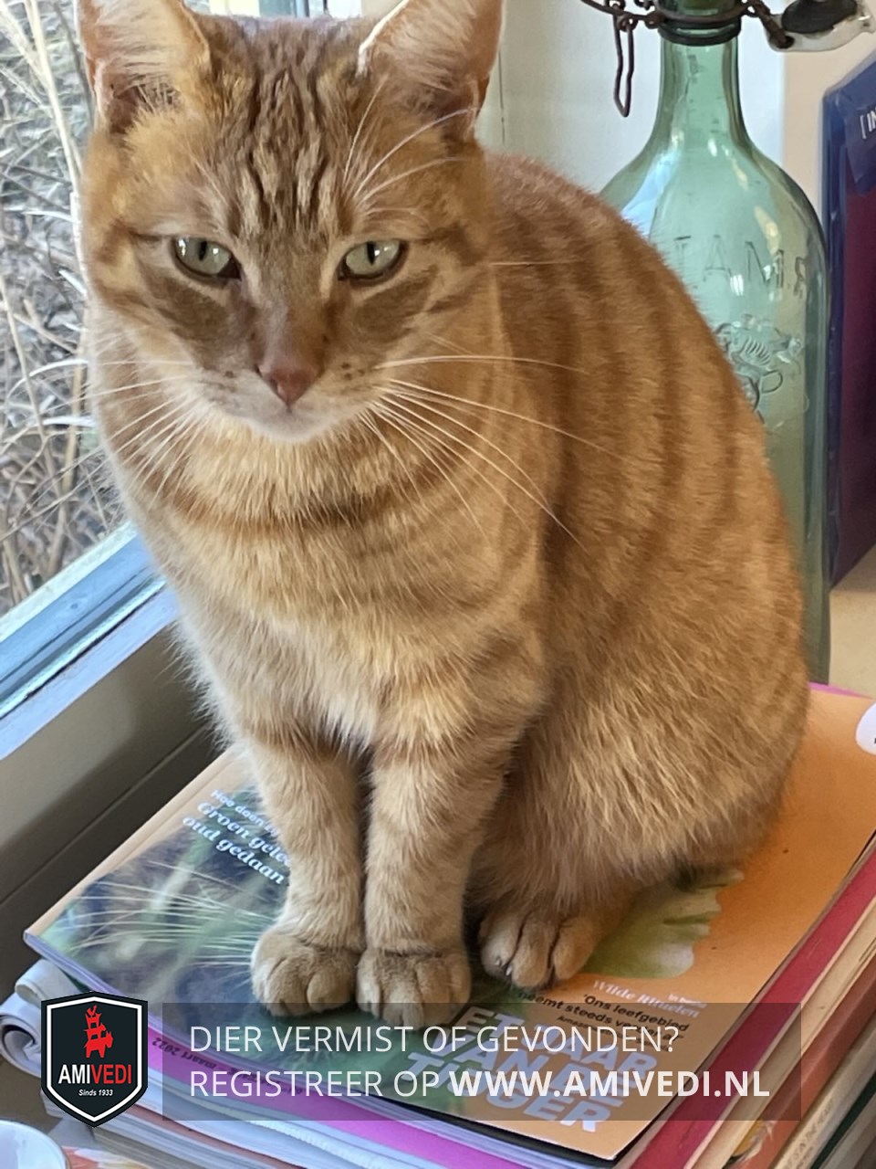 | Signalement | Voornamelijk cypers rode kater, wat wit bij het bekje en op de kaaklijn. Mooi getekende kop, staart scherp ringenpatroon. Littekentje boven het rechteroog. |