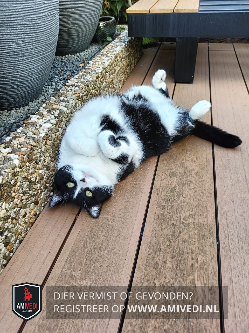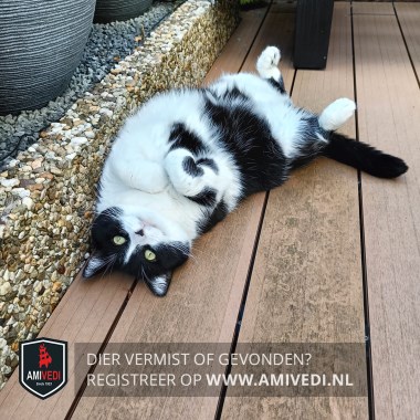 | Signalement | Nala is een wat stevigere, lieve en aanhankelijke (binnen)poes. Haar bovenkant is voornamelijk zwart, haar buik is voornamelijk wit met wat zwarte vlekken, zwart neus leertje. |