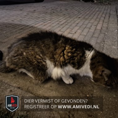 | Signalement | Witte vlek aan de rechterzijde vanaf nek, rechter voorpoot richting buik. Zwart bruin gemarmerd, knik in de staart. |