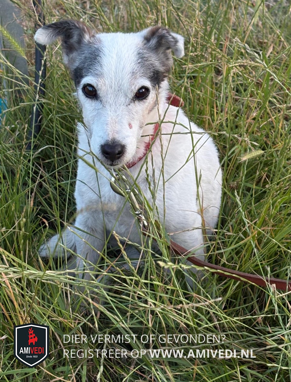 | Signalement | Parson-terriër. Grotendeels wit, met grijze accenten rond de oren tot boven de ogen. Ze heeft een klein plekje op haar neus en er ontbreekt een stukje uit een van de oren. LET OP: dier is doof! |