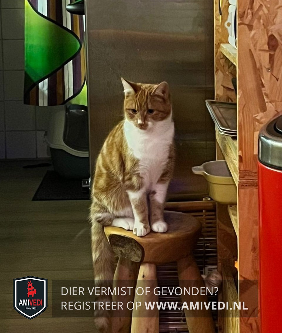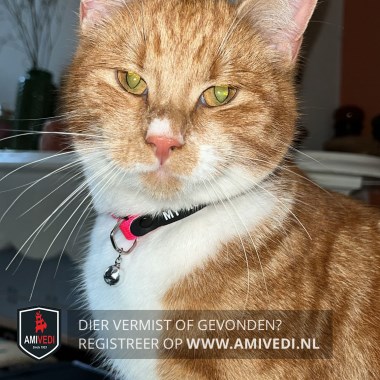 | Signalement | Cypers rood gemarmerd met wit Wit vlekje op de neusbrug aan voornamelijk de rechterkant, wit liijntje op de rechter bovenlip uitlopende in een witte borst, klein rood vlekje voorop de kin, witte borst, witte vlek op beide voorpoten bij de elleboog, witte voetjes voor, witte sokjes achter. |