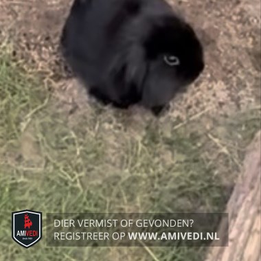 | Signalement | Zwart konijn met hangoren. |