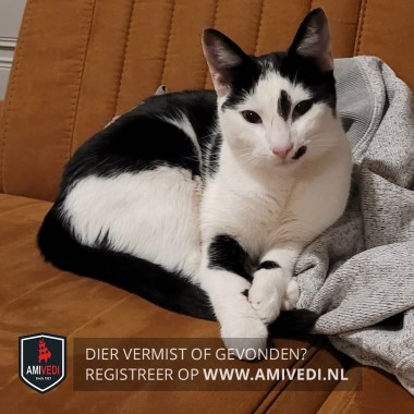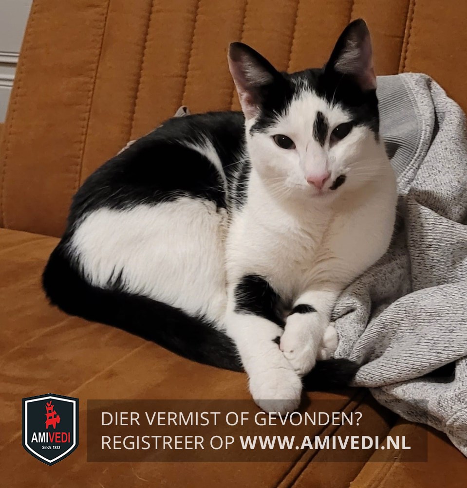| Signalement | Wit met zwarte poes. Zwart masker. Zwart vlekje aan de binnenkant van het linkeroog. Aan de linkerkant van het neusje zit een klein zwart vlekje. Zwarte rug, flanken en staart. Rechtervoorpoot een grote zwarte vlek. Linkervoorpoot een klein zwart vlekje. Ze kan niet miauwen. En is verder medicatie afhankelijk ze heeft namelijk epilesie . |