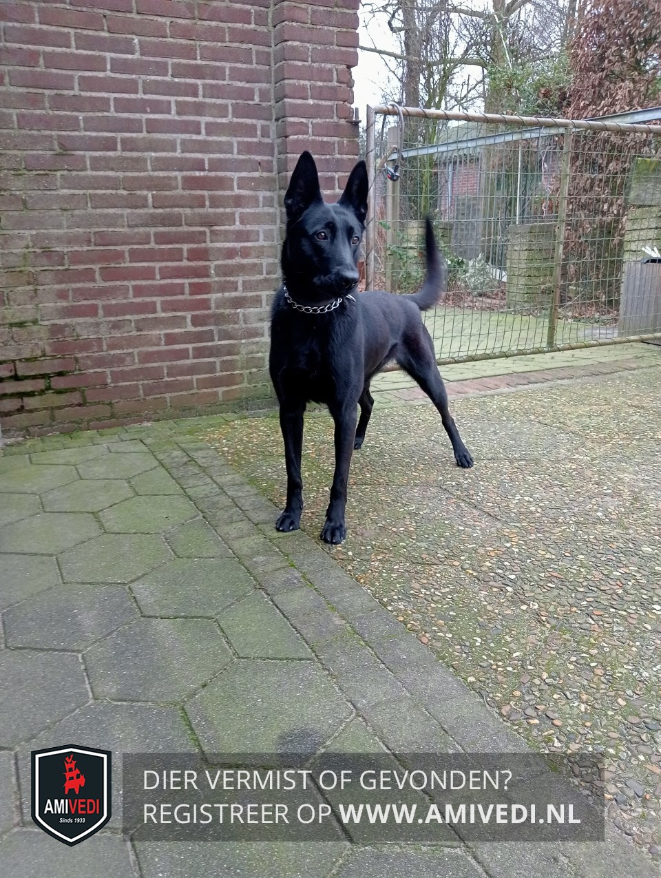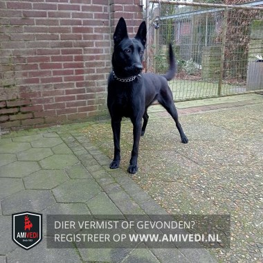 | Signalement | Kruising Mechelse herder, geheel zwart. |