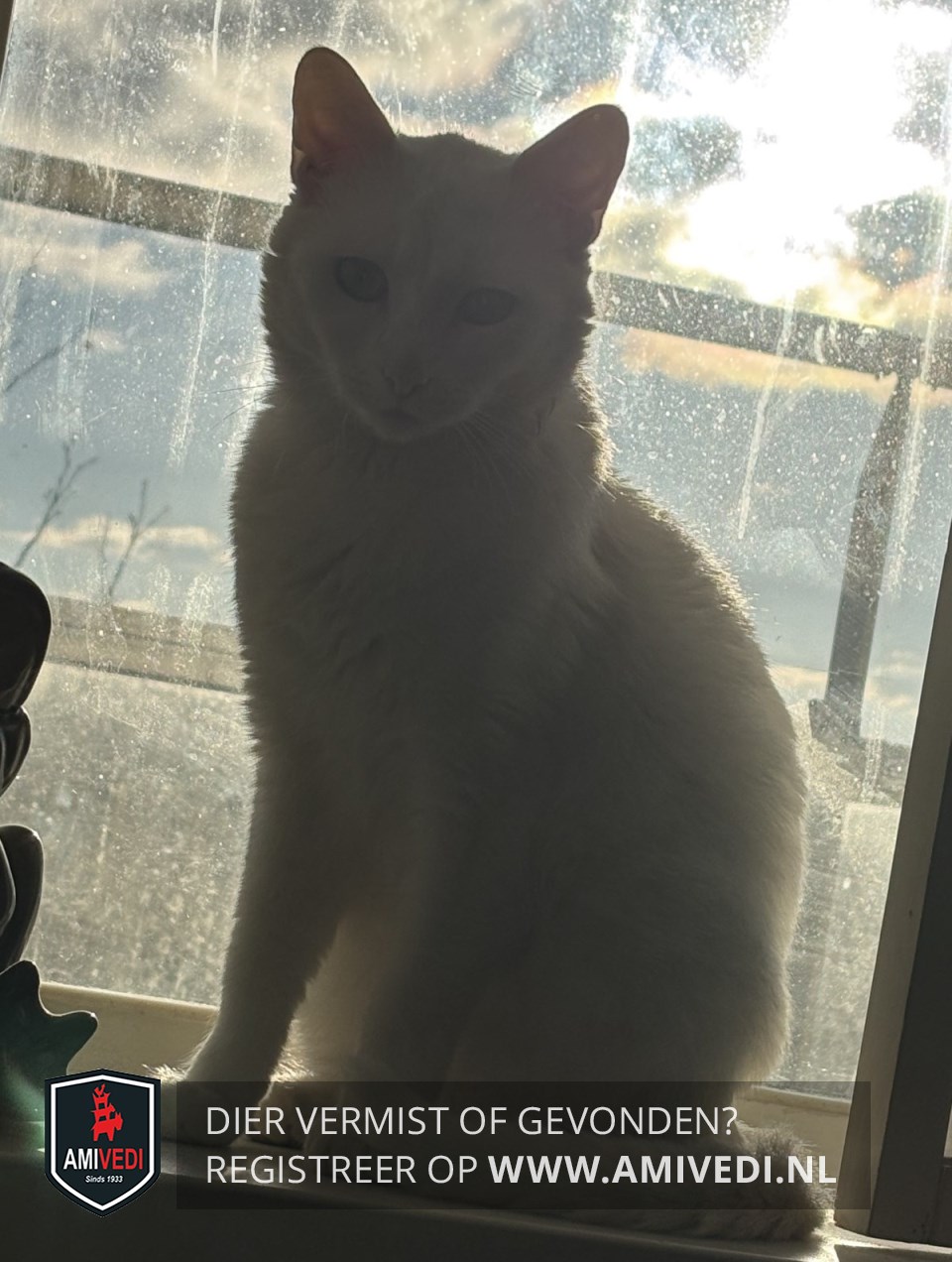 | Signalement | Witten kat, met groene ogen. |