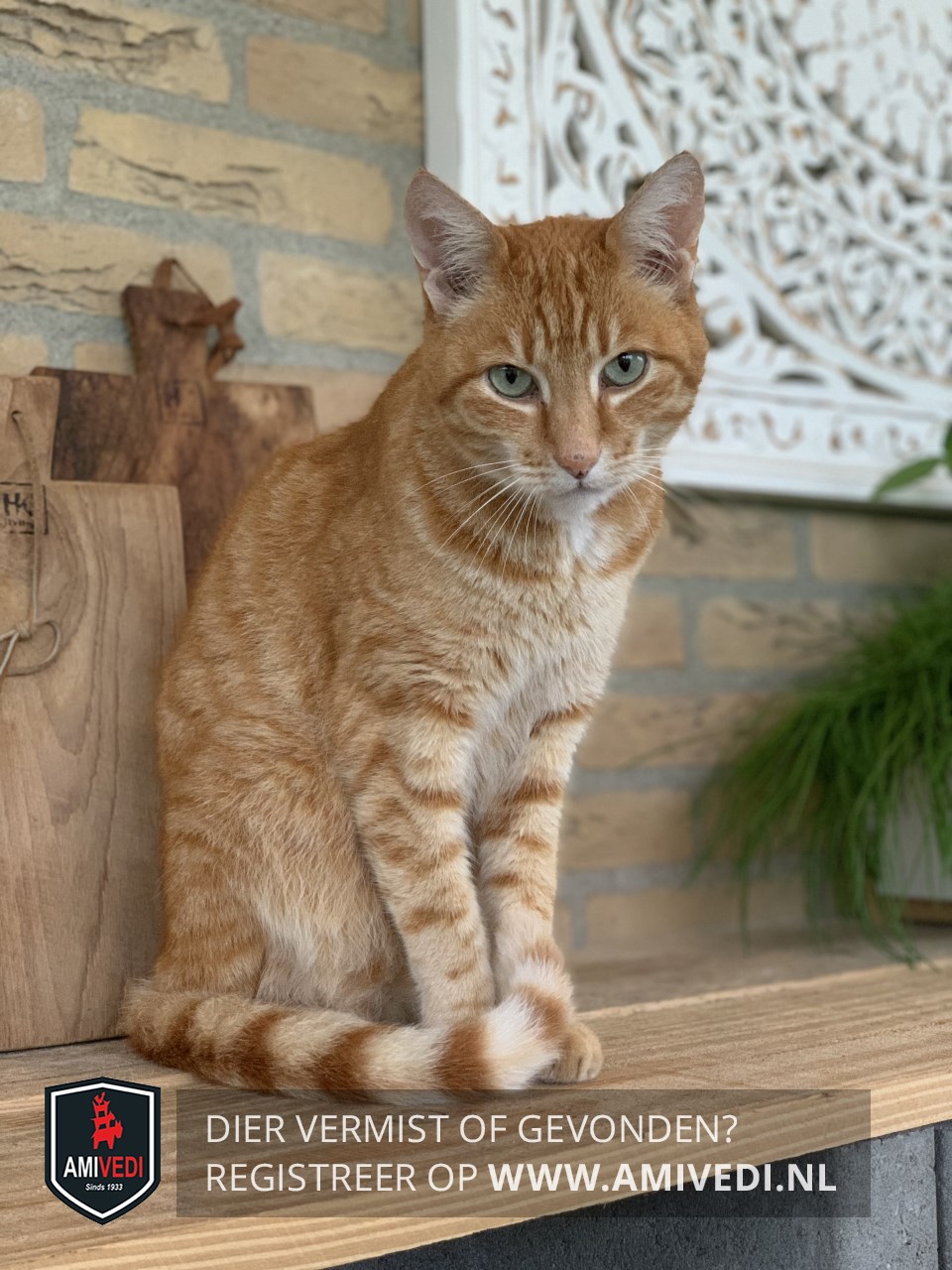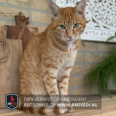 | Signalement | Rode kater met witte kin en hals, klein befje. Gestreepte staart |