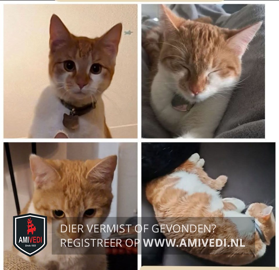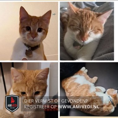 | Signalement | Jong poesje. Ruggetje vooral cypers rood. Pootjes en buik wit. Rode neus met witte wangen. Pas gesteriliseerd, dus buikje is nog wat kaal. Geschrokken weggerend. |
