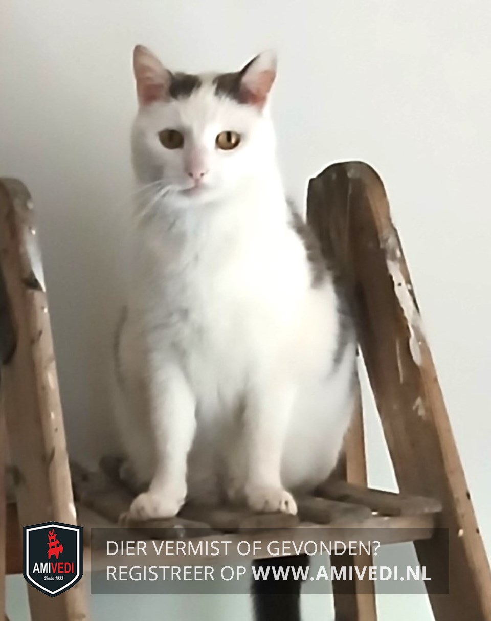 | Signalement | Wit met grijze vlekken. Grijze vlekken bij de oren. Grote kater. |