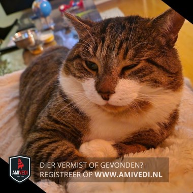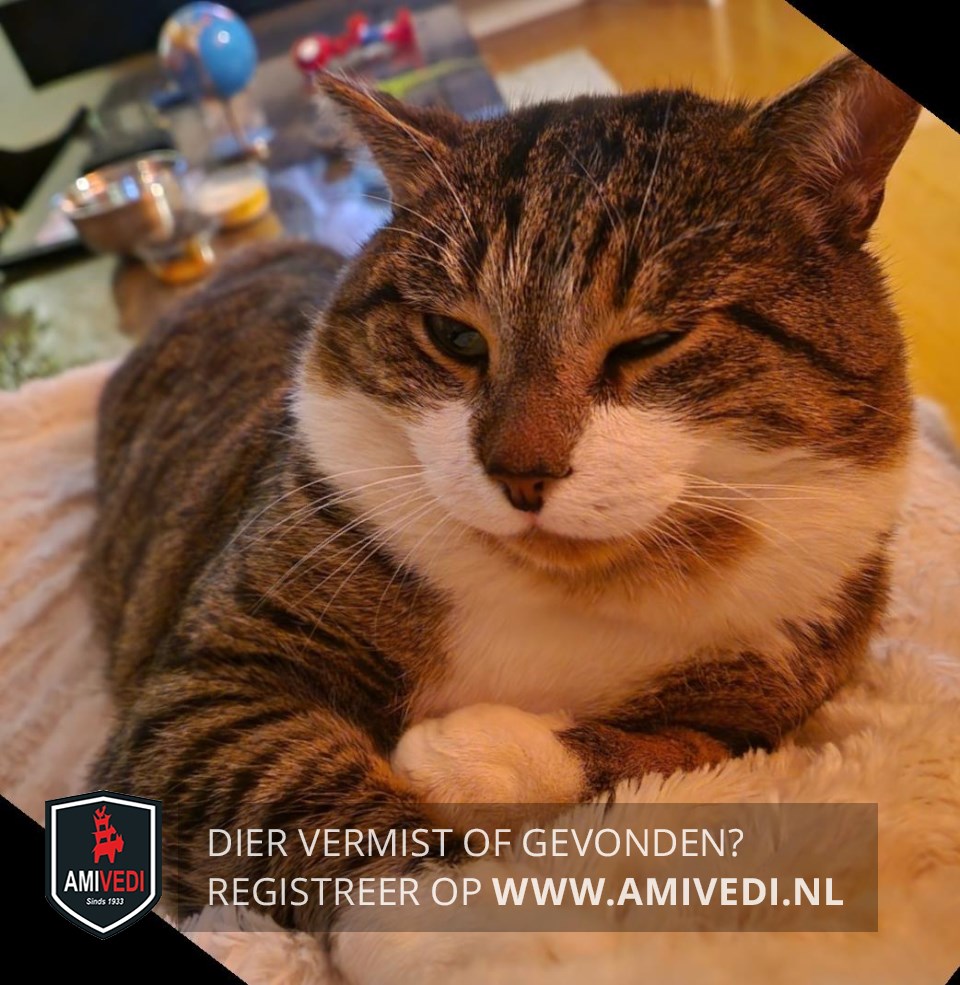 | Signalement | Cypers bruin zwart gestreept met wit Witte flinke snor die tot bijna onder de ogen reikt, creme kleurige kin, witte borst, witte voetjes voor, witte buik en witte sokjes achter. |
