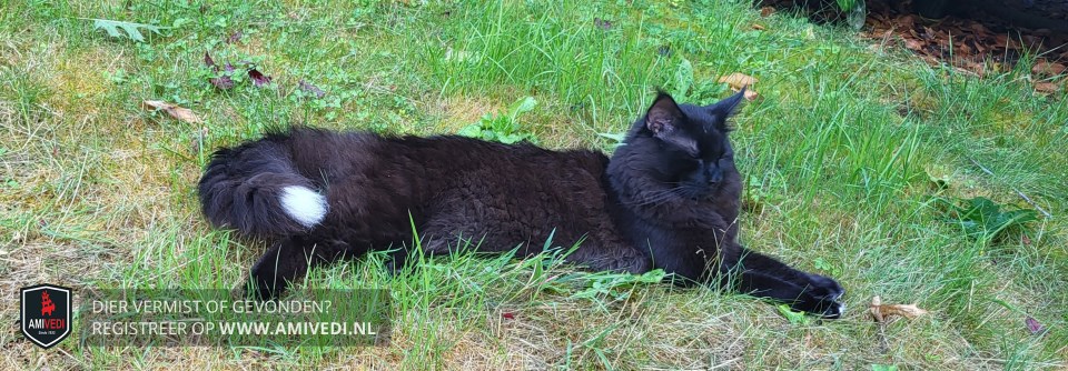 | Signalement | Zwart met een wit puntje aan staart en rechter voorpoot heeft een wit teentje. |