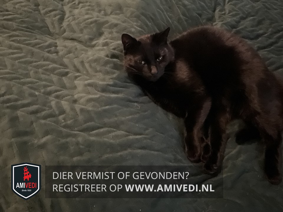 | Signalement | Zwarte poes , beetje dik en groot en schigtig,maar mooie glanzende vacht en verzorgd. |