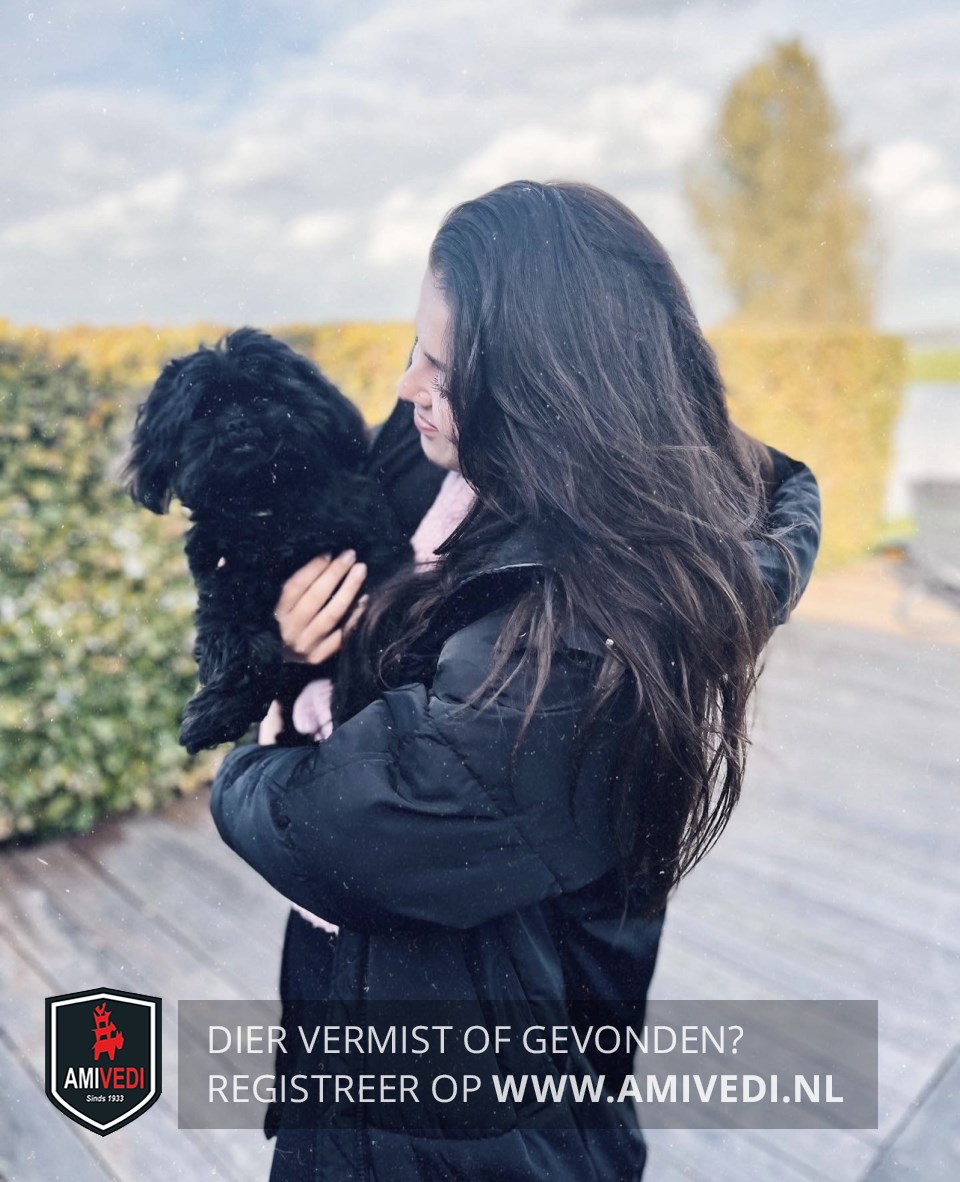 | Signalement | Zwart halflangharig met een beetje wit Klein beetje wit op de borst en tussen de voorpoten. |