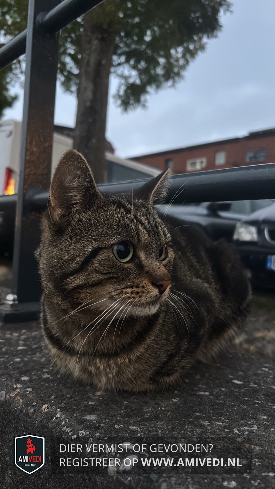 | Signalement | Cypers bruin/zwart gemarmerd met witte kin. |
