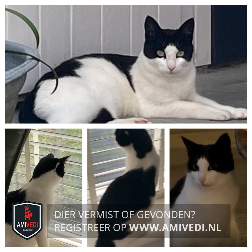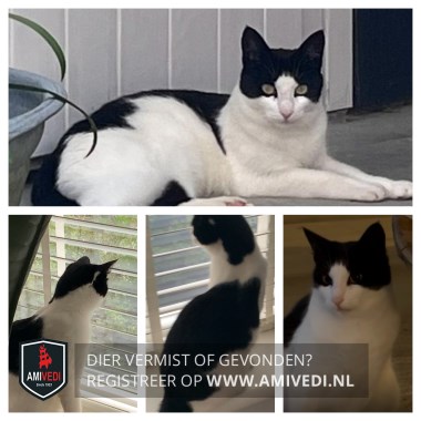 | Signalement | Heeft wit vlekje achter haar linker oor. Zwart dek rug en staart, dan wit stuk bovenaan rug en kop. |
