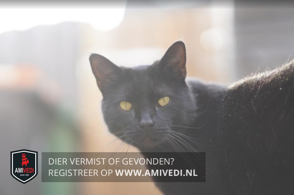 | Signalement | Zwarte, kortharige kat. |