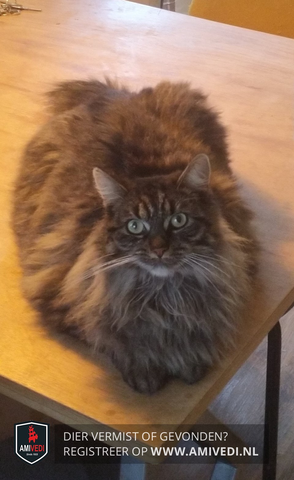 | Signalement | Boskat X, volledig grijs gemêleerd met grijs of witte kin. |
