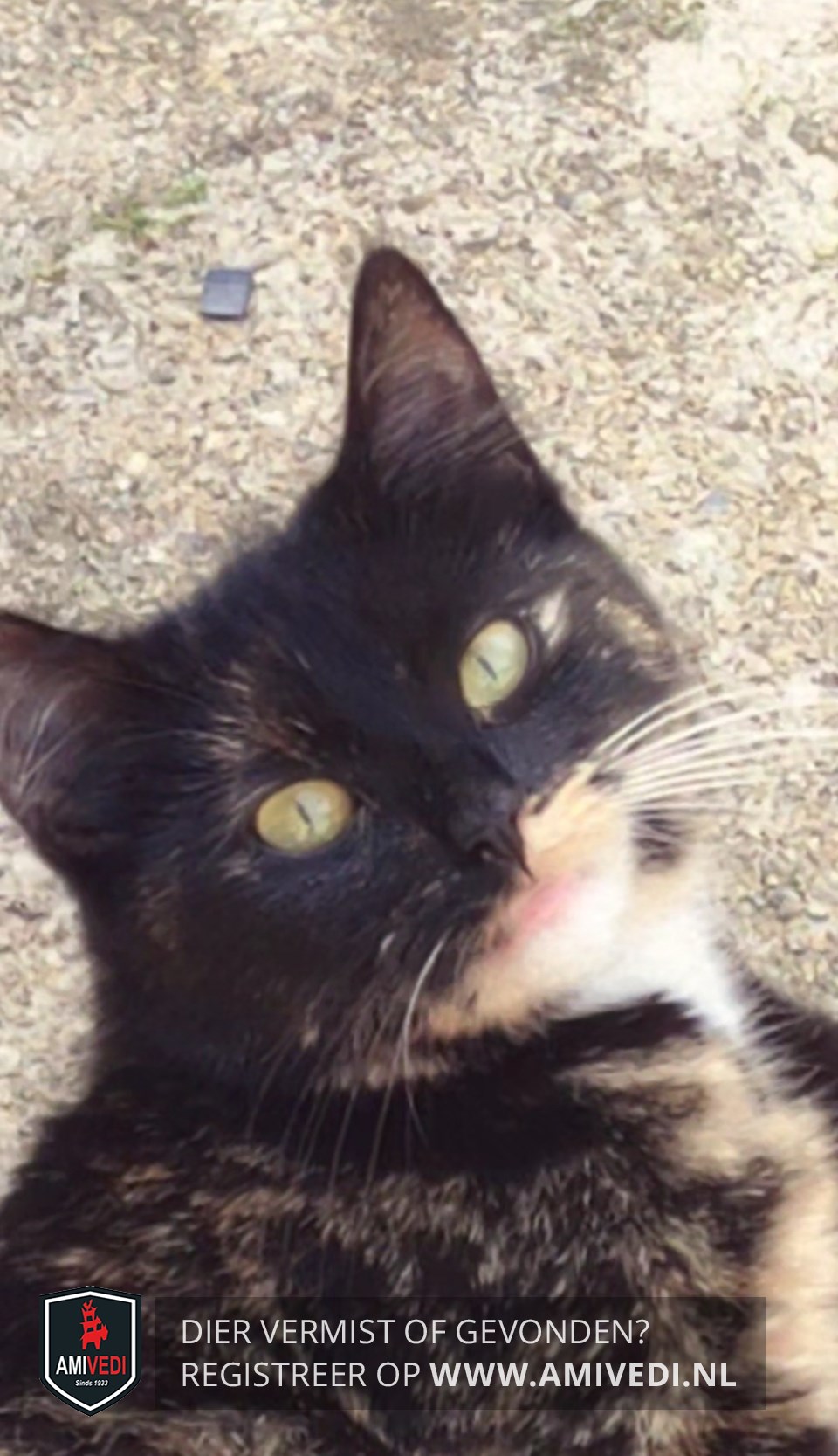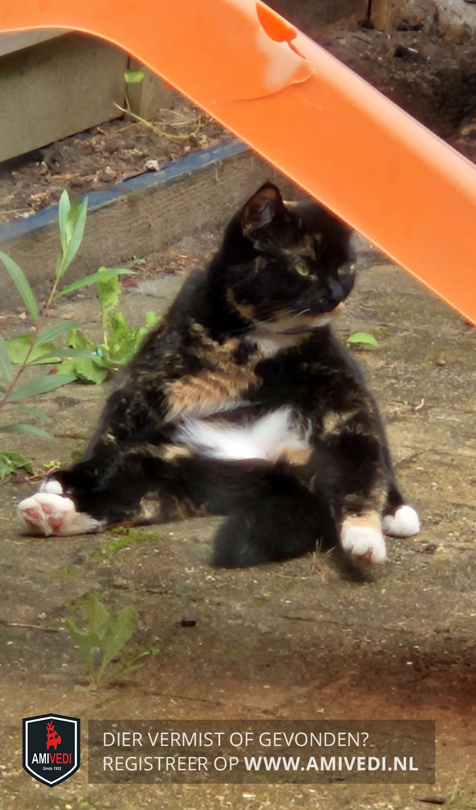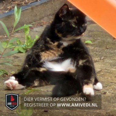| Signalement | Schildpad met wit. Witte kin en bef. Witte buik. Rechter voorpoot witte teentjes. Linker voorpoot en beide achterpoten witte voetjes. |