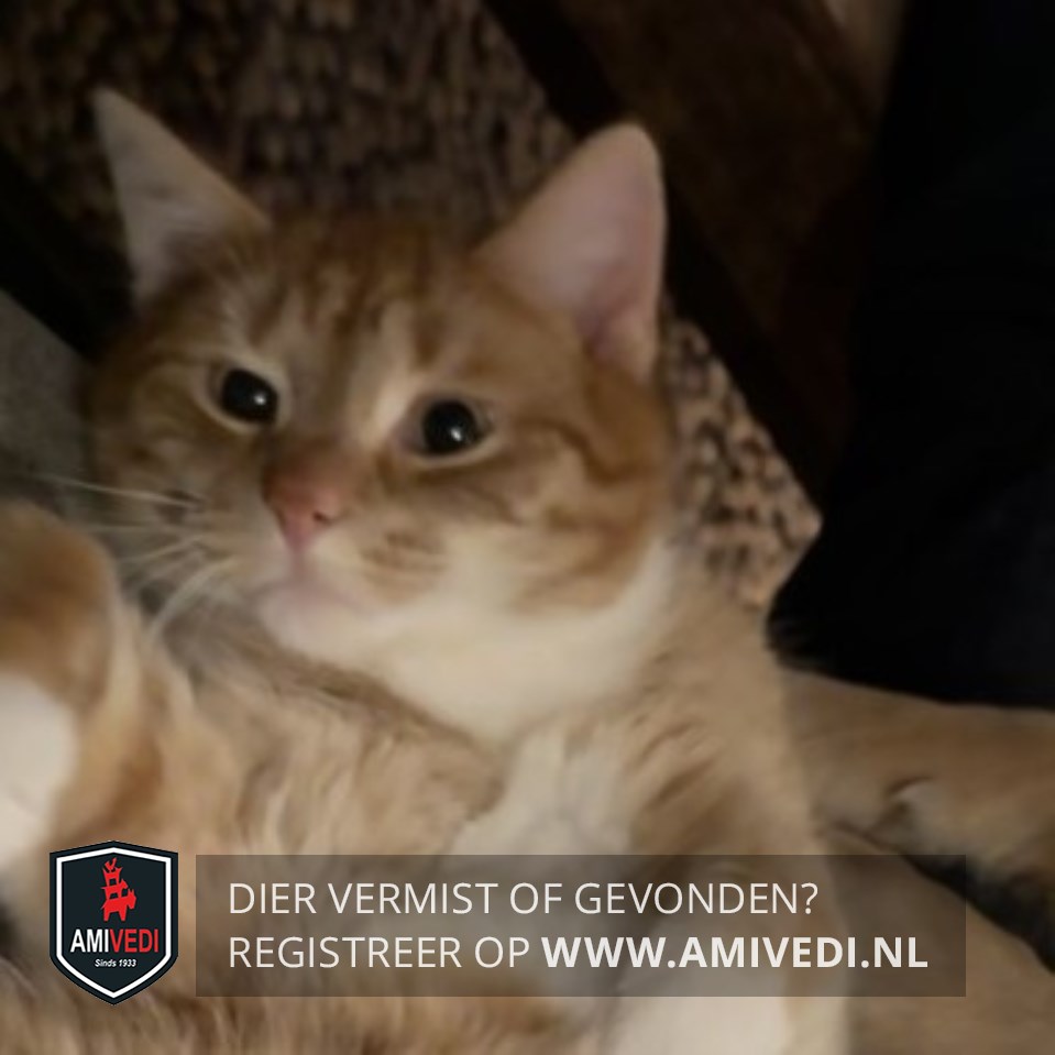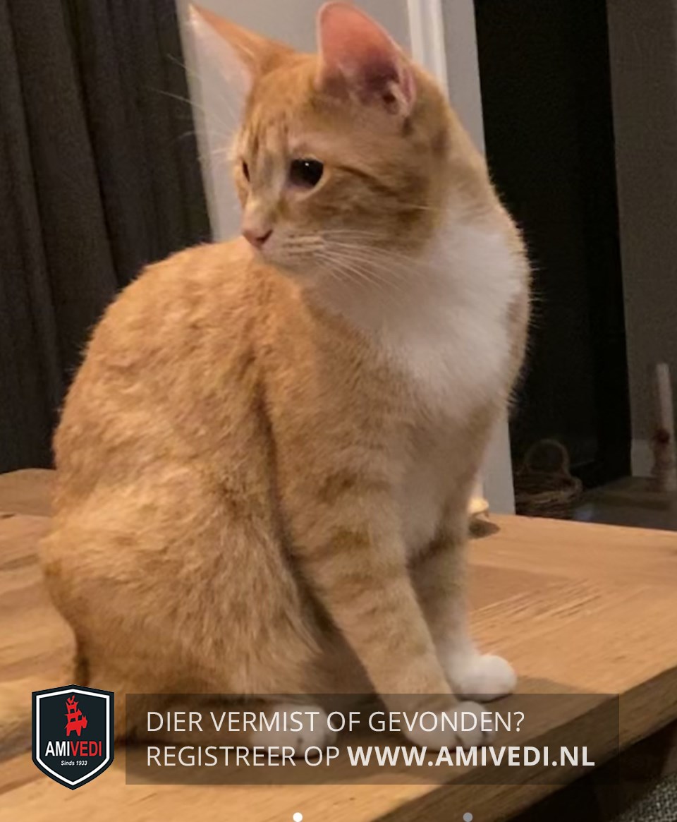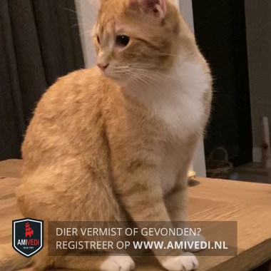 | Signalement | Cypers rood met witte kin en bef, grote witte bef, wat wit bij bekje, roze /wit neusje, groene ogen, witte voetjes. |