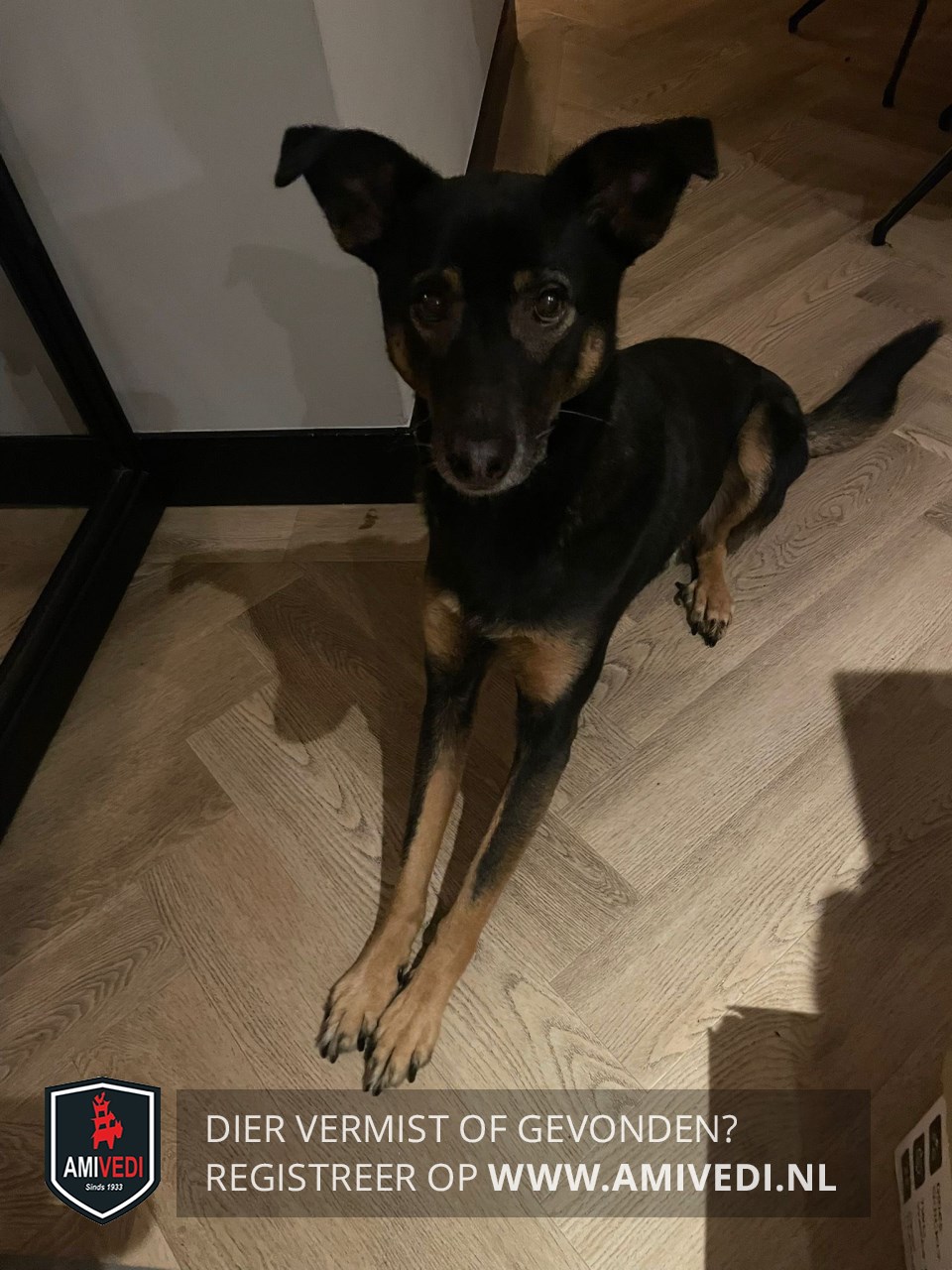 | Signalement | Middelgrote hond. Zwart met bruin. Bruinig rond de ogen, aan de onderkant van de wangen, boven de voorpoten, en op de voorpoten, en een deel van de achterpoten. Rest van de kop, rug en flanken grotendeels zwart |