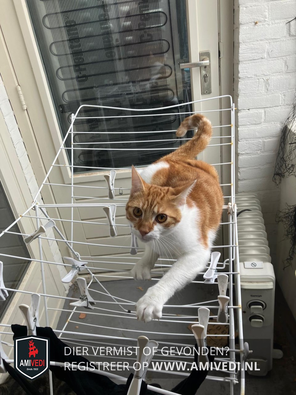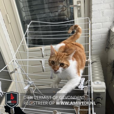 | Signalement | Ranke, slanke overwegend rode kater et witte snor, witte bef en kraag, witte onderkant en poten. |