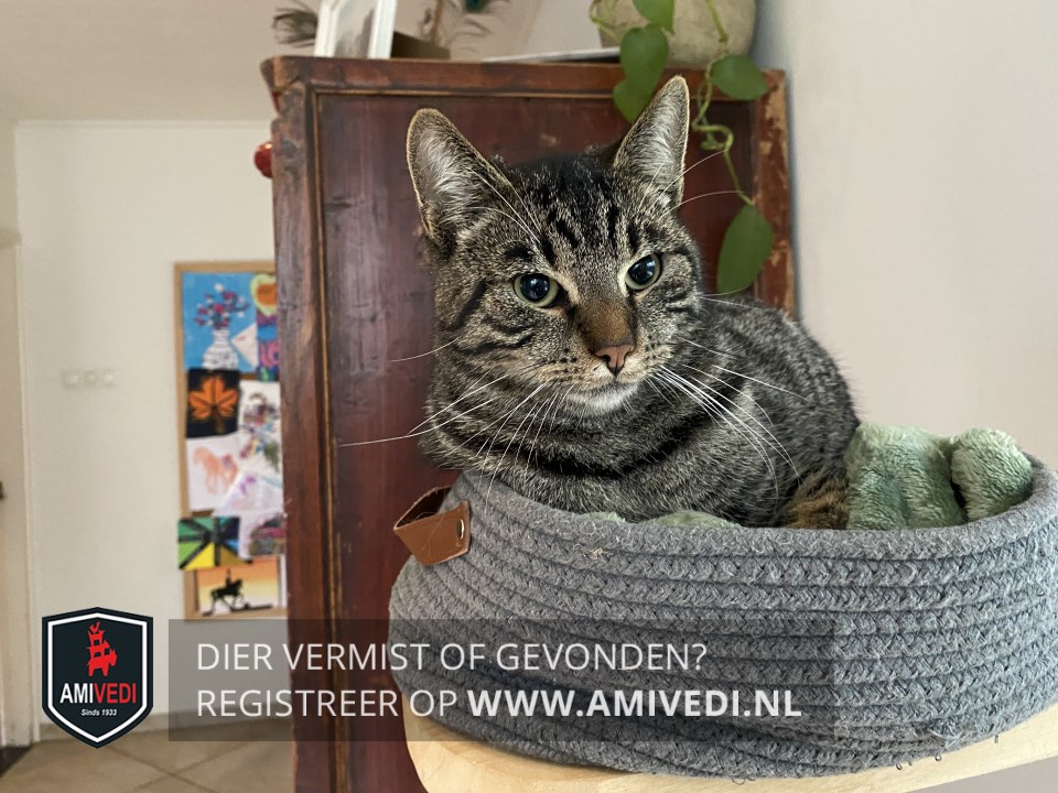 | Signalement | Mooie grote volle cyperse kater met wit naast de bruine neus en aan de kin iets wit. Wat schuw |