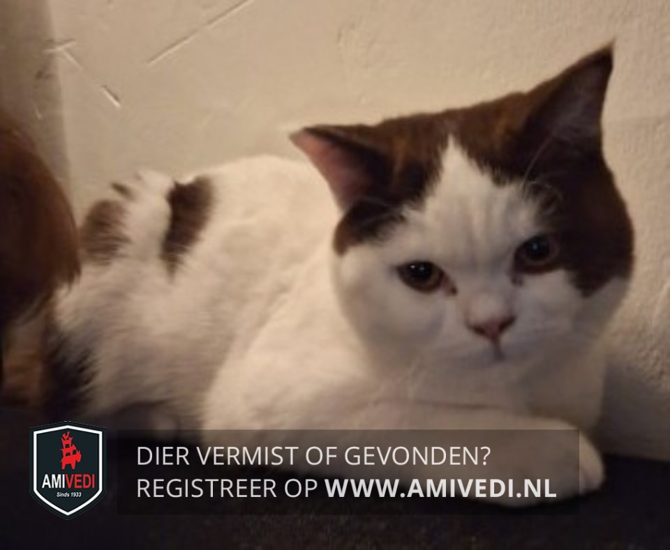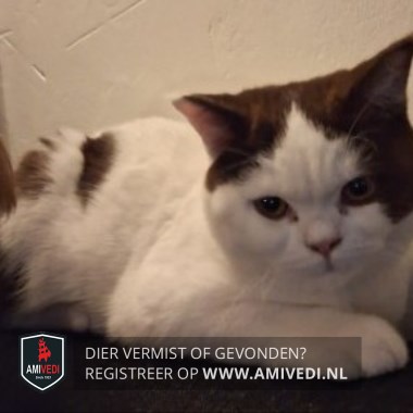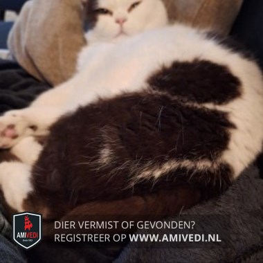 | Signalement | Bruin rond de oortjes, bruin op de linker wang. Bruine vlekken op de rug, vooral op de onderrug. Geheel bruine staart. |