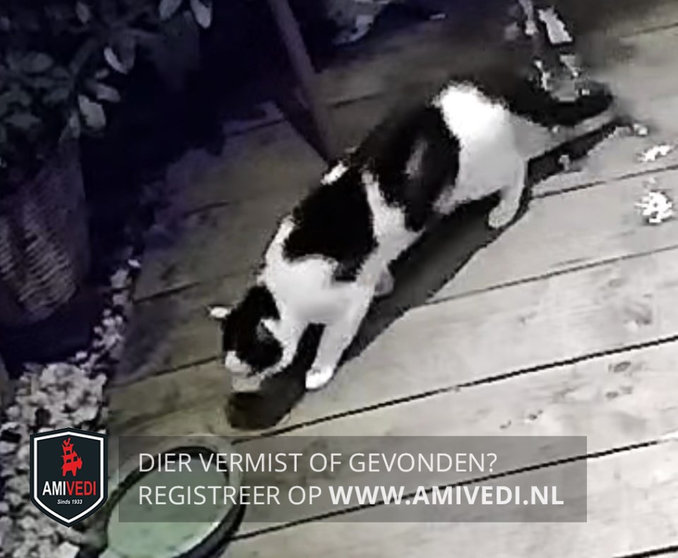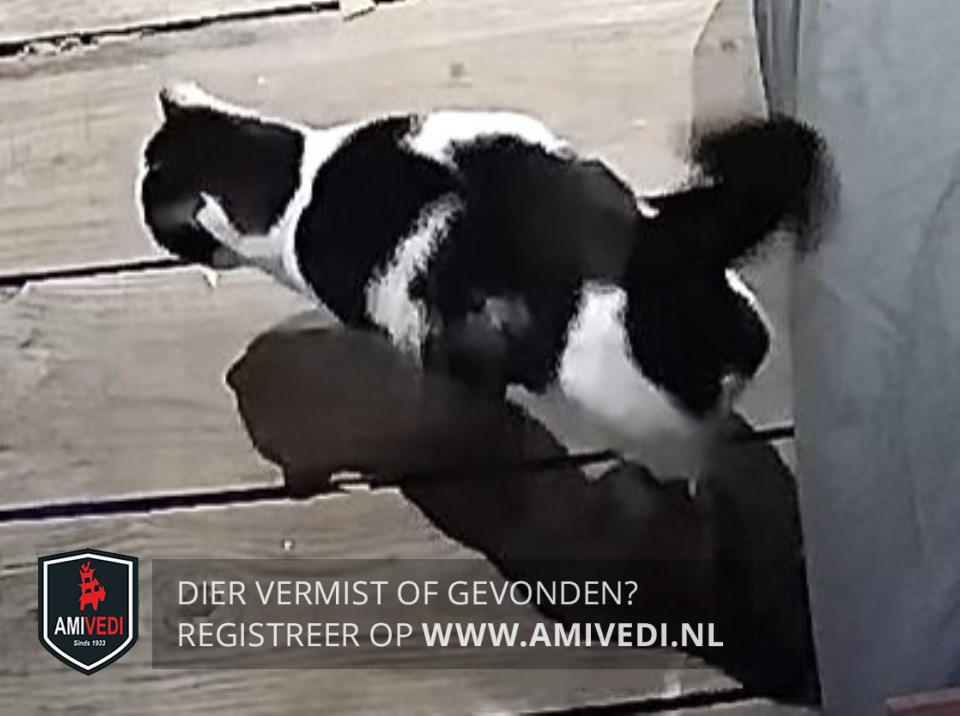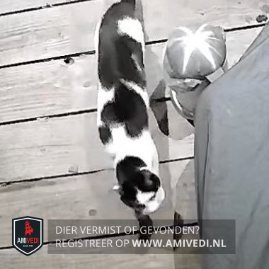 | Signalement | Wit zwart gevlekt. Voornamelijk wit, bovenop de kop, voor de oren, achterop de kop en over de nek zwart, over de schouderbladen een grote zwarte vlek, op het midden van de rug een grote brede zwarte vlek loopt iets over de linkerflank en rechts doorlopend in een smallere baan over de achterhand bovenaan de staart loopt het zwart breder uit, staart zwart. Grote kater. |