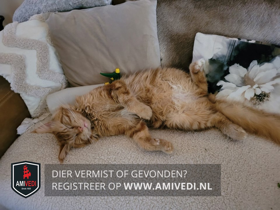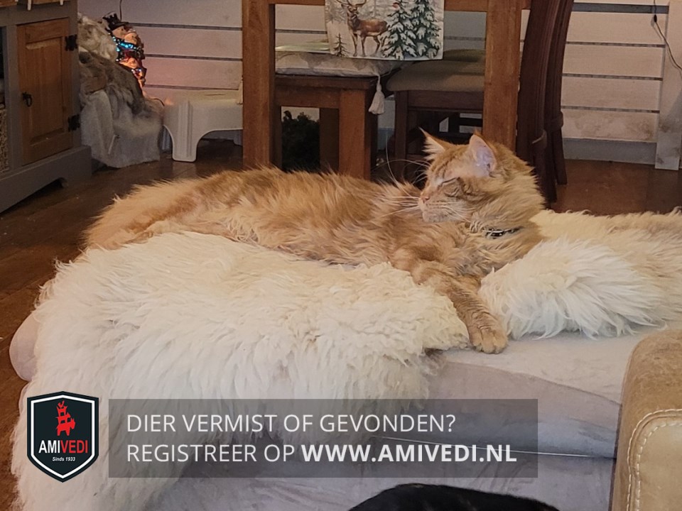 | Signalement | Rode gestreepte langharige Maine Coon kruising. |