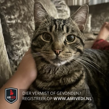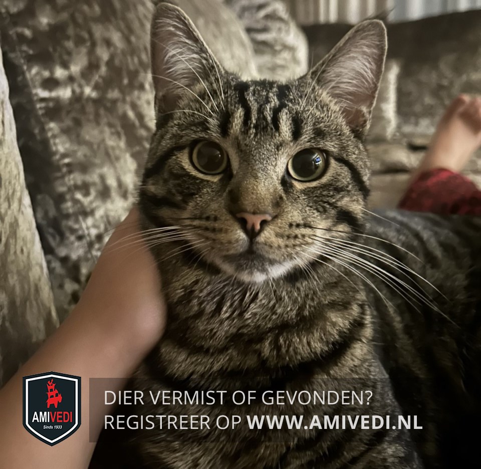 | Signalement | Cypers grijs zwarte kater met wat wit aan de snorharen en aan de kin. Voor de rest helemaal grijs zwart cypers gestreept. |