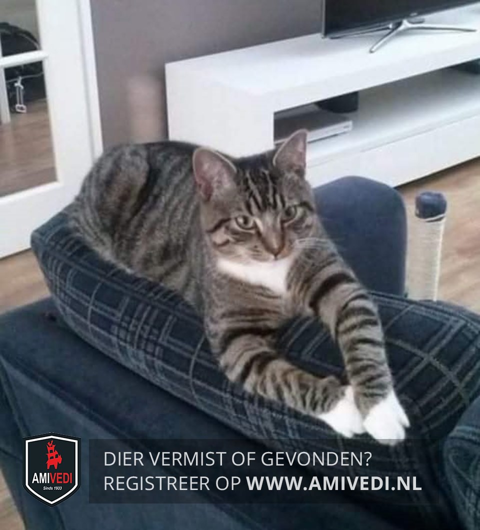 | Signalement | Grijs zwart gestreept met witte kin, hals, bef. Voorpoten witte voetjes. |