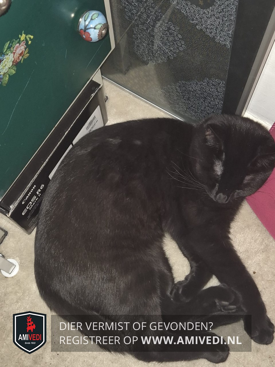 | Signalement | Europese korthaar kater, volledig zwart. Pixel is een binnenkat, kent de omgeving niet! |