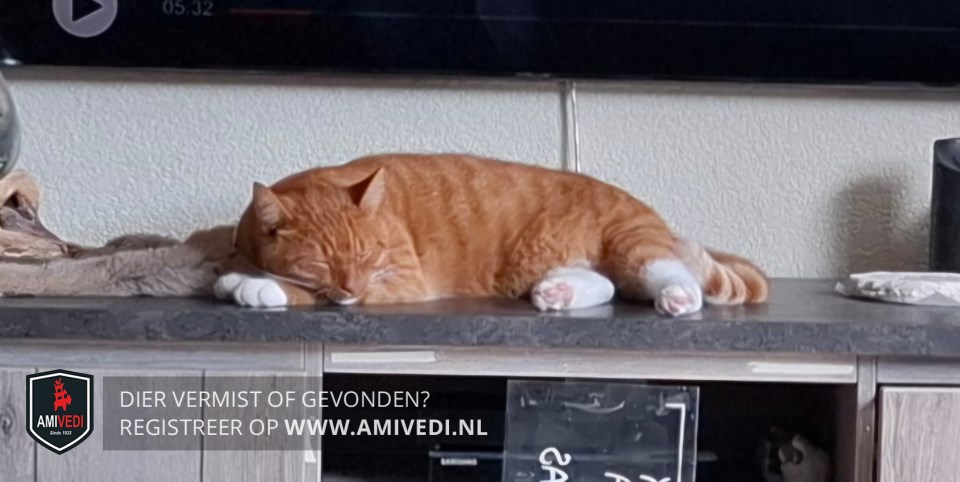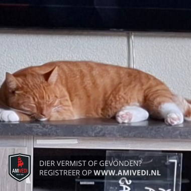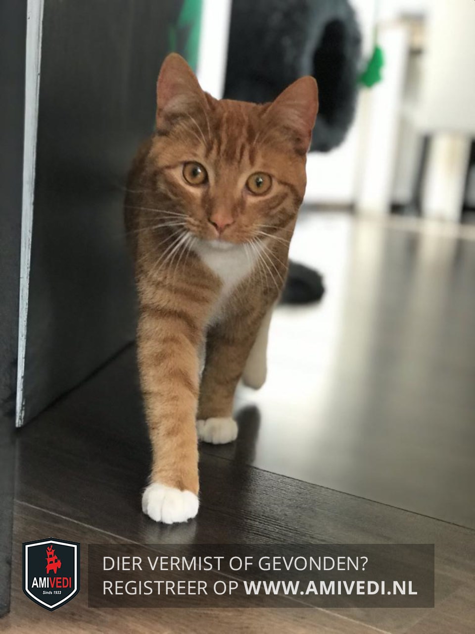 | Signalement | Cypers rood gestreepte kater met koperkleurige ogen, witte kin en bef, witte voetjes voor en witte kniekousjes achter, geringde staart eindigend in een witte punt. Niet voeren ivm dieet |