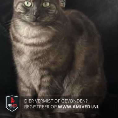 | Signalement | Cypers grijs/zwart met wit. Groene ogen. Witte kin en bef. Staart is donker grijs/zwart geringd. |