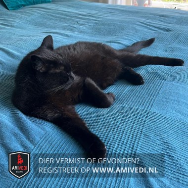 | Signalement | Helemaal zwart, grote kater, lange staart. Nieuwsgierig maar schrikachtig. |