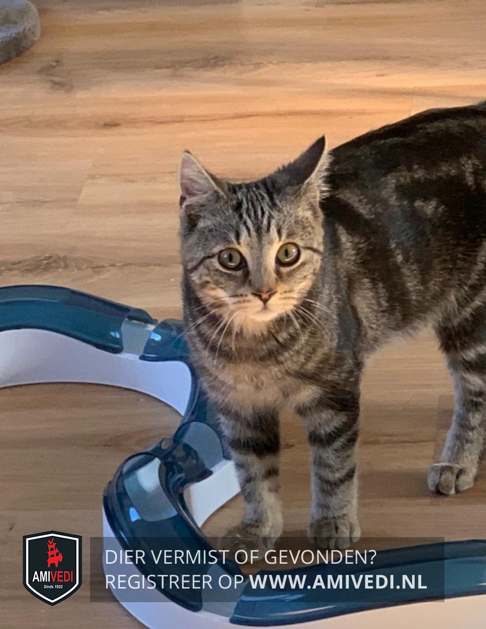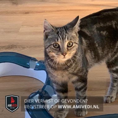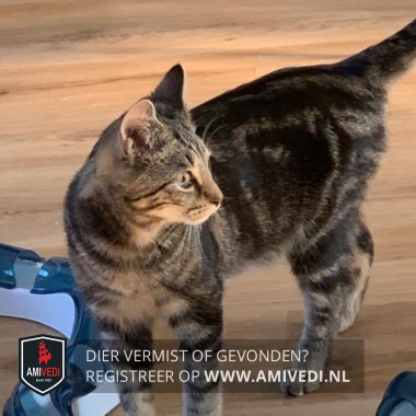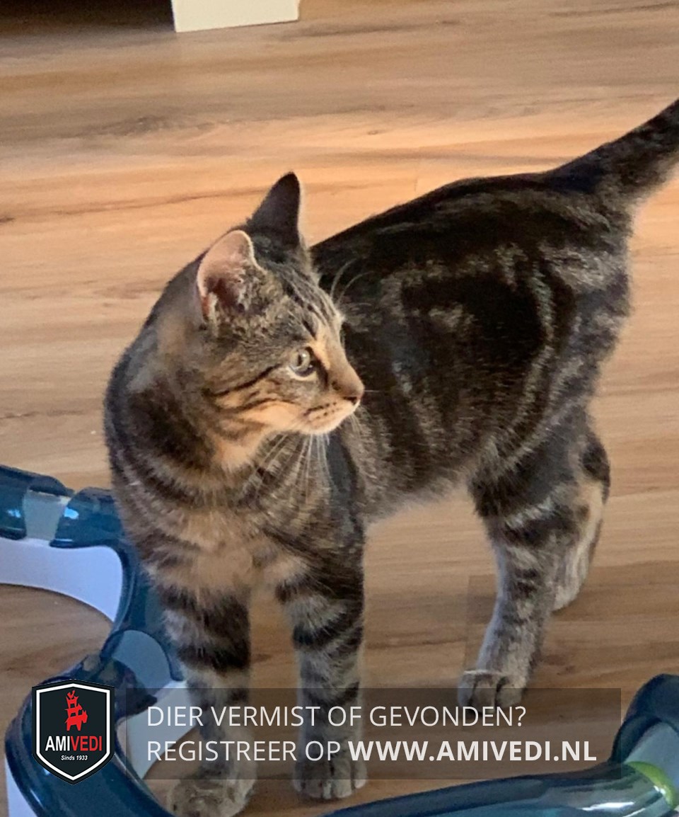 | Signalement | Cyperse zwart/grijze kater. Cyperse strepen op het kopje. Lichtbruine snuitje. Donker gestreept lijfje. Cypers gestreepte pootjes. |