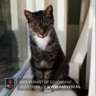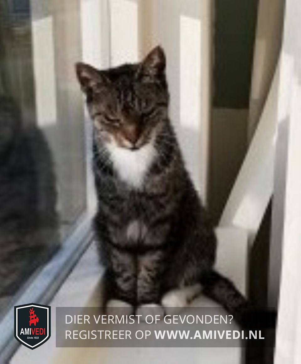 | Signalement | Witte bef, beetje wit op borst/buik. Voorpootjes hebben witte voetjes, achterpootjes hebben ook wit. Verder vrij donker cypers bruin/zwart. |