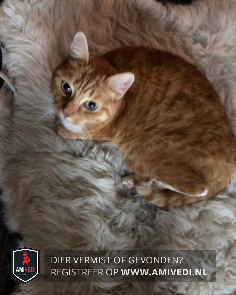 | Signalement | Cypers rood gestreept met witte accenten. Witte bef, witte voetjes aan de voorpoten en witte kousen aan de achterpoten; de staart heeft meer naar het uiteinde toe brede lichtgekleurde ringen. LET OP: binnenkat, buiten niet gewend! |