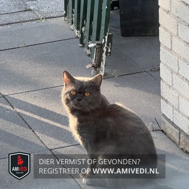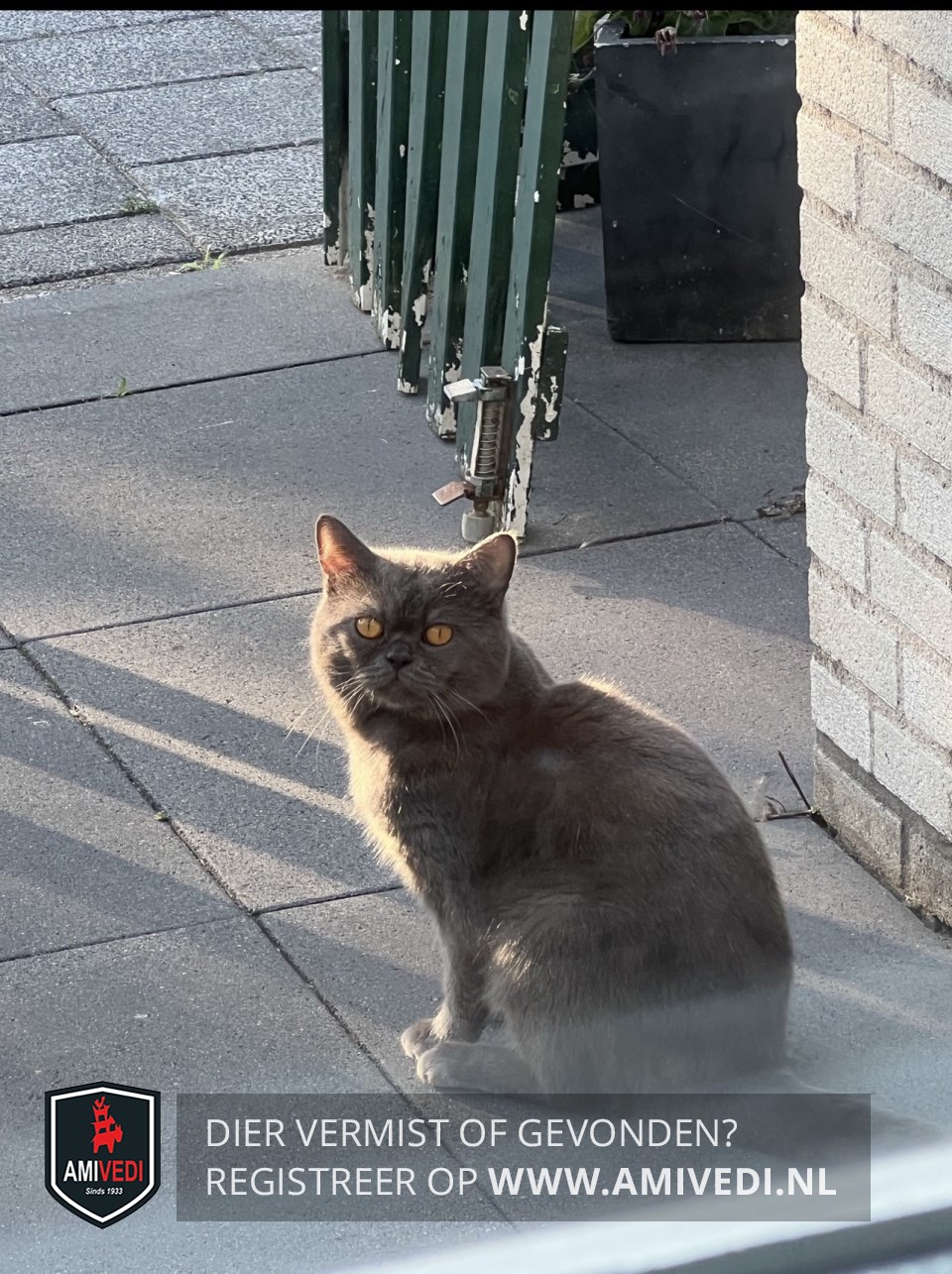 | Signalement | volledig grijs met een platte snuit/beetje ingedeukte neusbrug, gele ogen |