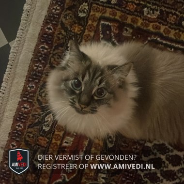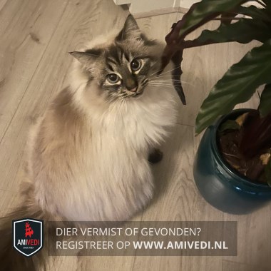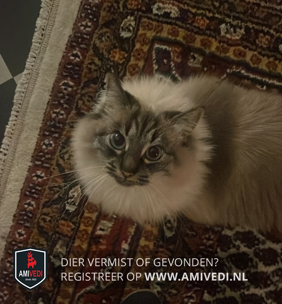 | Signalement | Kruising Siberische Boskat en Ragdoll, gestreepte grijze tekening op de kop, donkere oren, grijze pootjes en grijze grote pluimstaart. |