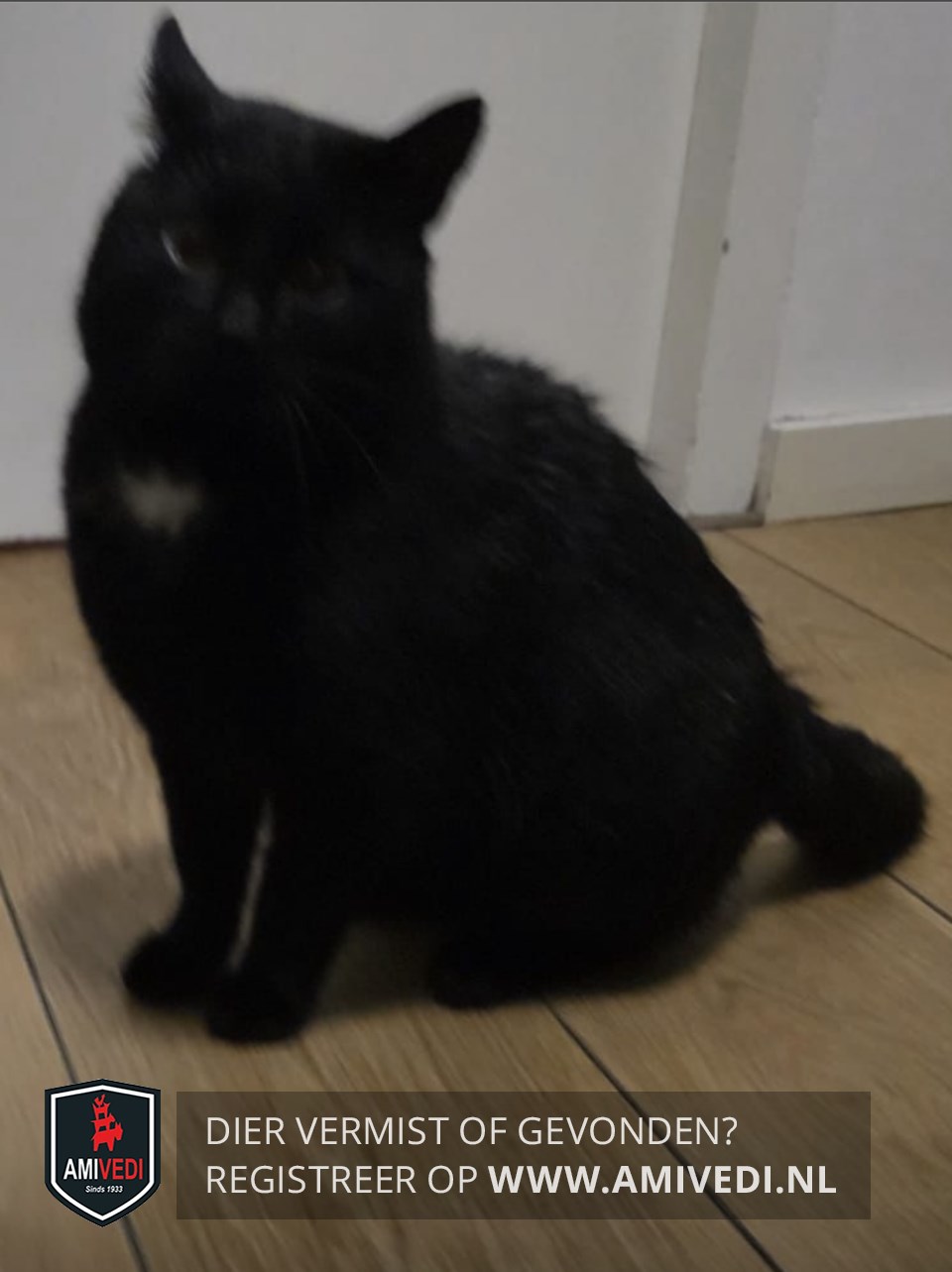 | Signalement | zwarte poes met een klein, wit befje |