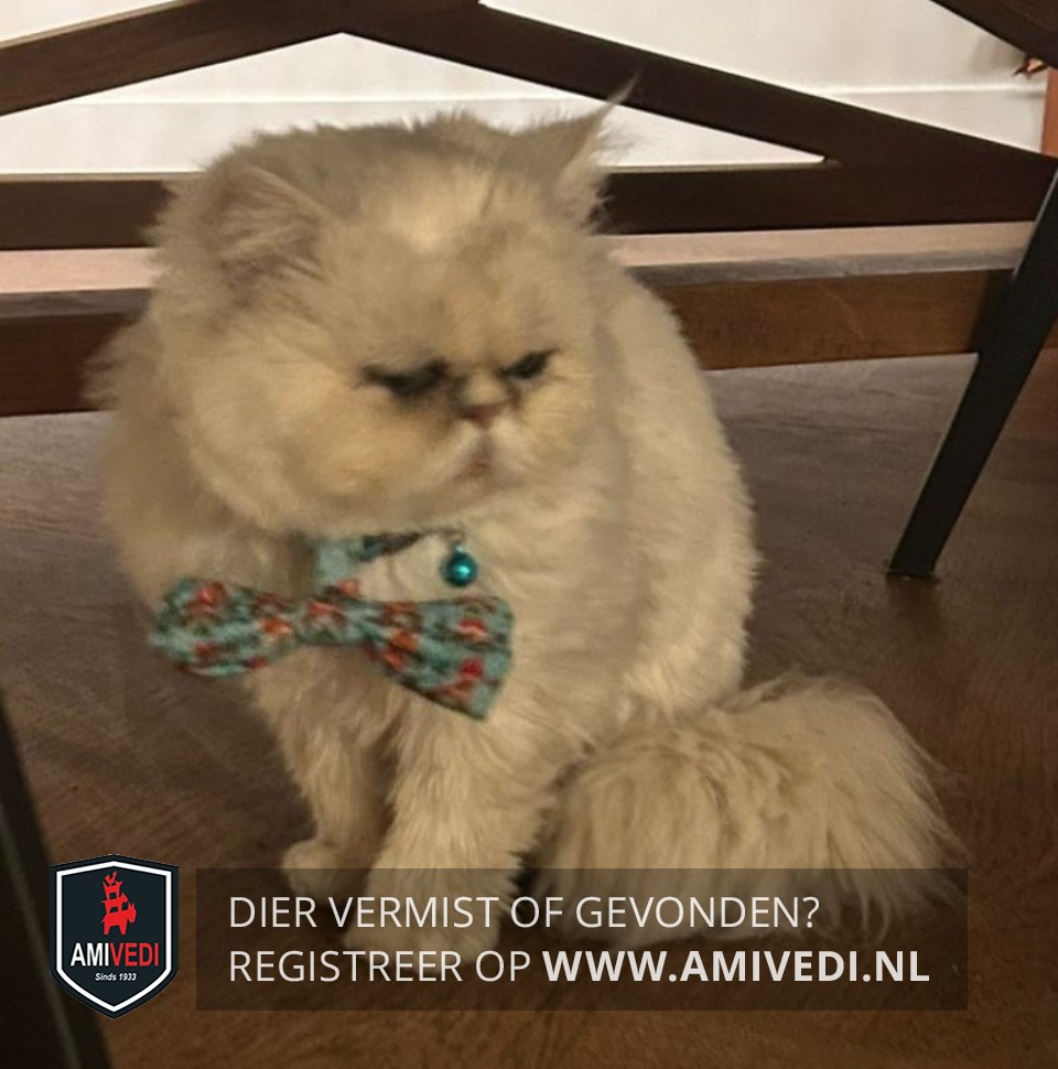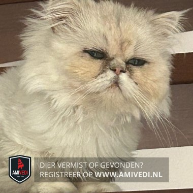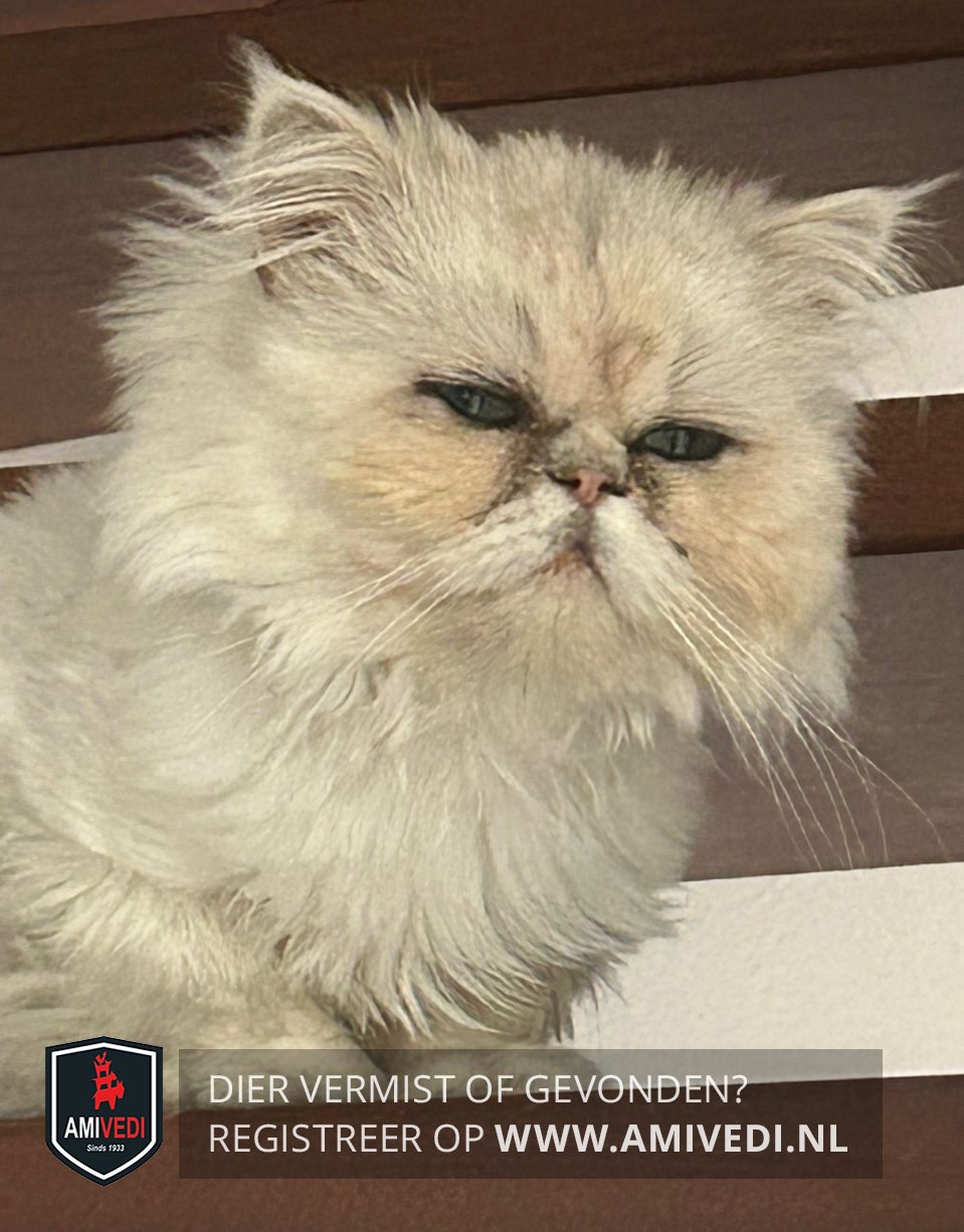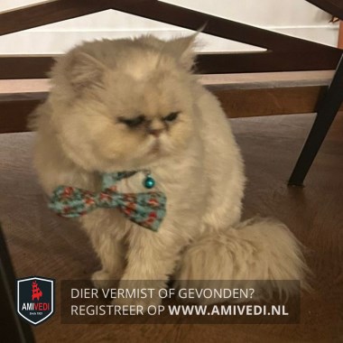 | Signalement | Langharige Perzische wit-beige gemêleerde kater. |
