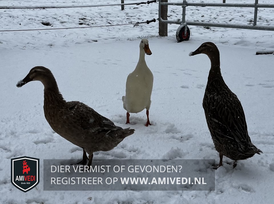| Signalement | 1 witte eend en 2 bruine eenden. Vrouwtjes. Indische loopeenden |