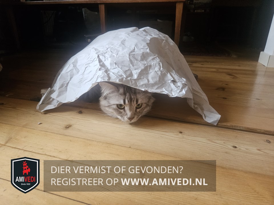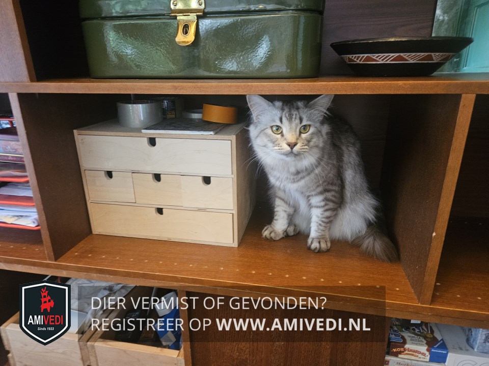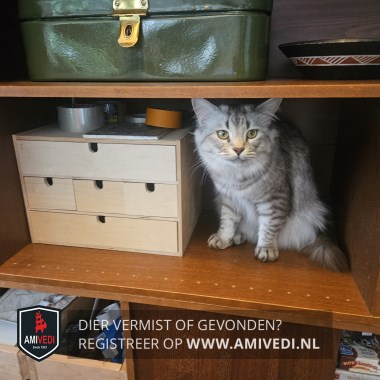 | Signalement | Lichtgrijze siberische kat, pluimpjes aan de oren, dikke pluimstaart. |