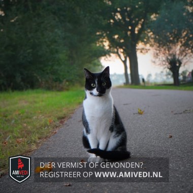 | Signalement | Uiterlijk: • Overwegend zwarte vacht met witte hals, borst, buik en poten • Witte snoet met een opvallende zwarte aftekening rond neus en ogen • Grote, ronde geelgroene ogen • Middellange staart, zwart met witte punt (kan wisselend zichtbaar zijn) Bijzonderheden: • Zeer herkenbaar zwart masker op het gezicht • Wit loopt door vanaf de borst naar de voorpoten • Ziet er verzorgd uit, duidelijke huiskat • Vaak rustig, kan voorzichtig of schrikachtig reageren > Slank tot normaal postuur |