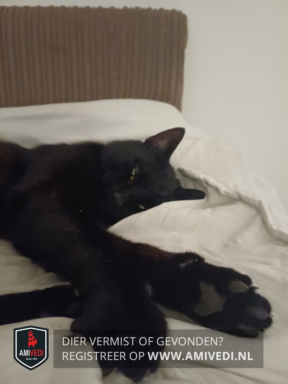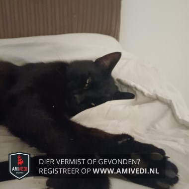 | Signalement | Europese korthaar kater, volledig zwart met groene ogen. |