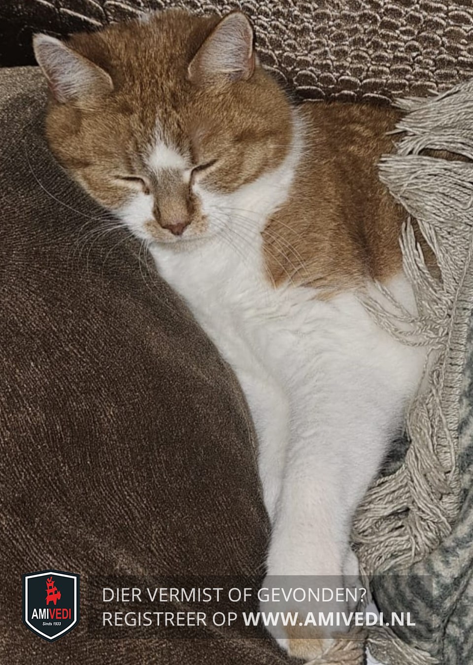 | Signalement | Rood-cypers snuitje met een witte streep over haar neusje. Witte kin, bef en borst. Witte voorpootjes. Rode rug. Linker voorpooje 2 rode teentjes. Cyperse staart. |
