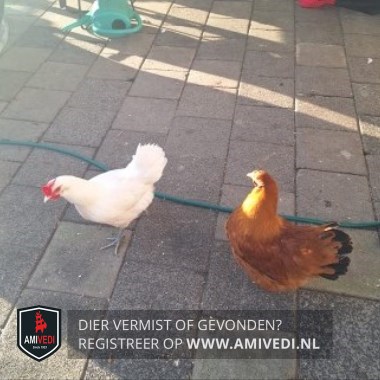 | Signalement | Bruine kip (samen met een witte kip) |