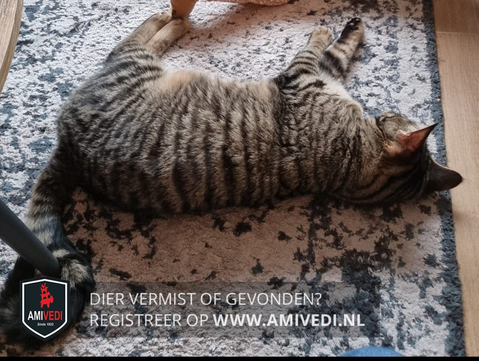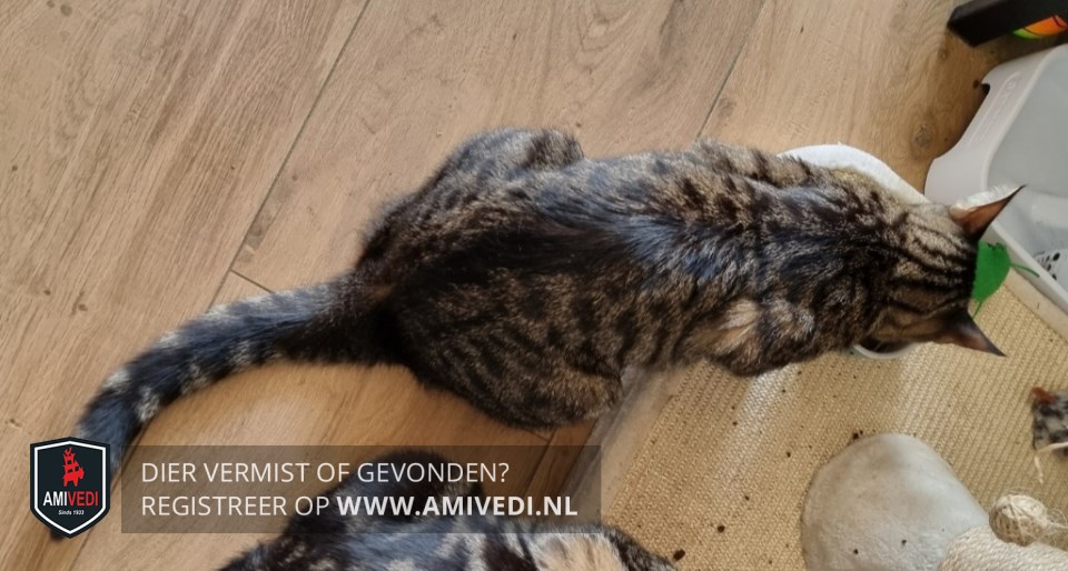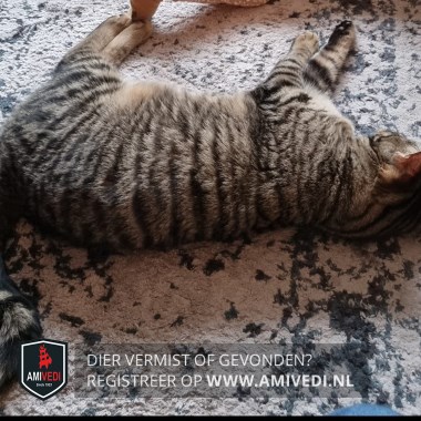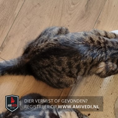 | Signalement | X Main Coon/ EK . Bruin/ zwart gestreept. Grote/ forse kater. |